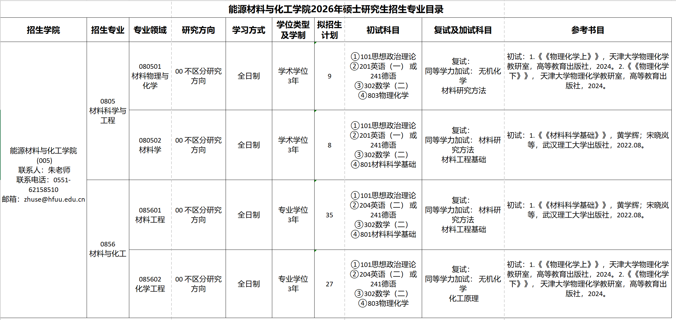 能源材料與化工學院2026年碩士研究生招生專業目錄