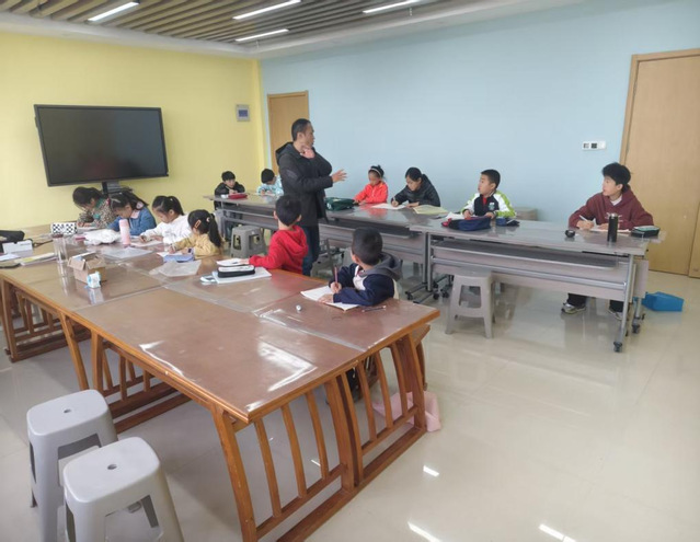 課堂上,志愿者們化身“小老師”,全力配合社區(qū)老師開展硬筆書法教學。他們穿梭在孩子們的座位間,仔細觀察每一位孩子的握筆姿勢、坐姿及書寫動作,及時糾正“勾腕”“握筆過緊”“身體歪斜”等問題;針對孩子們書寫時遇到的“橫畫不平”“豎畫不直”等筆畫難題,志愿者們俯身示范正確寫法,手把手指導運筆力度,還用通俗易懂的語言講解漢字的間架結(jié)構(gòu)與硬筆書寫技巧,幫助孩子們理解“橫平豎直”的書寫要領(lǐng)。同時,志愿者們時刻關(guān)注課堂紀律,以溫和的提醒引導孩子們保持專注,鼓勵大家大膽下筆、相互交流書寫心得,讓原本略顯枯燥的練字過程,變得充滿樂趣與成就感。孩子們求知若渴,一筆一劃認真臨摹,紙張翻動間,中華漢字的形態(tài)之美與文化內(nèi)涵,悄然在孩子們心中扎根。