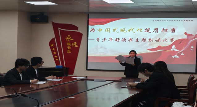 為引導青年學子在書香中厚植家國情懷,以青春之姿踐行青年擔當,11月14日晚,由我院學生會辦公室、文體部聯合學生第三黨支部主辦的“為中國式現代化挺膺擔當——青春年少好讀書”主題朗誦比賽在生化樓三樓會議室隆重舉行。