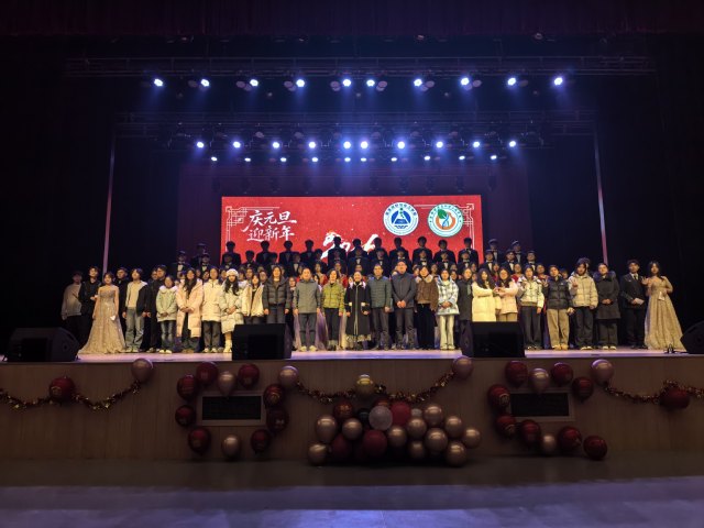 隨著合唱旋律漸歇,主持人登臺致閉幕詞,回顧整場晚會的精彩瞬間,向所有參演人員、幕后工作人員及到場師生致以誠摯謝意。隨后,兩院領導、教師、工作人員與參演人員共同走上舞臺,在鏡頭前揮手合影,一張張笑臉定格下這場元旦晚會的溫馨與美好,也記錄下兩院師生同心同行的珍貴時刻。