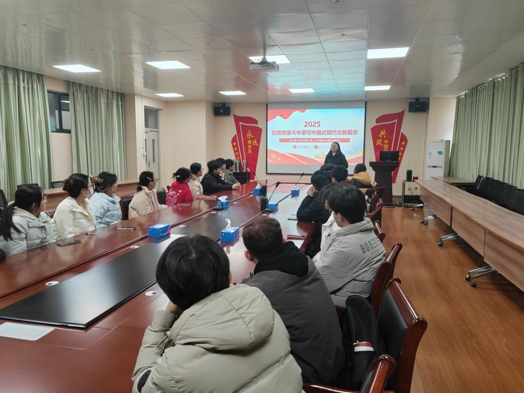 為深入學習貫徹習近平新時代中國特色社會主義思想與二十屆四中全會精神,緊密結合合肥大學第一次黨代會精神及學校發展規劃,引導青年黨員將個人奮斗融入校地發展與國家建設大局,2025年12月25日,學生第一黨支部書記、校二十屆四中全會宣講團成員陳靜怡,以《在接續奮斗中譜寫中國式現代化新篇章》為題,為學生第一、三黨支部全體黨員講授專題黨課。