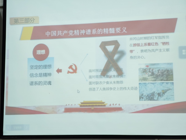 2021年12月31日,馬克思主義學院謝敏芳副教授在生化樓二階梯教室為我院黨員上了一堂題為《中國共產黨人的精神譜系》的黨課。