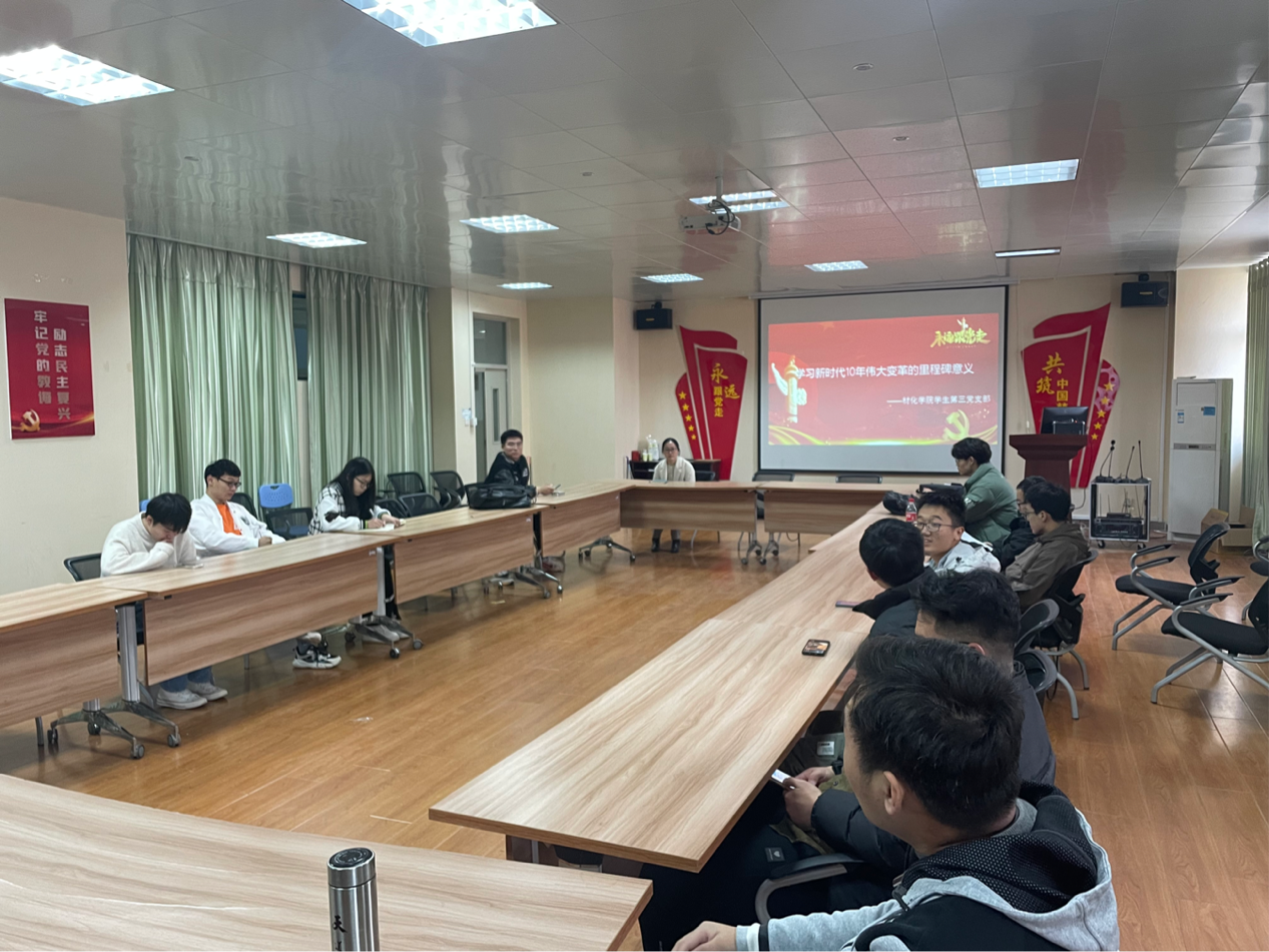 2023年3月3日下午,合肥學(xué)院能源材料與化工學(xué)院學(xué)生第三黨支部全體黨員在生化樓會議室舉辦關(guān)于學(xué)習(xí)新時代10年偉大變革的里程碑意義的主題黨課,本次會議通過學(xué)習(xí)新時代10年的偉大變革,進一步深入學(xué)習(xí)貫徹黨的二十大精神,讓每一位學(xué)員能準(zhǔn)確把握二十大精神的核心要義,準(zhǔn)確領(lǐng)悟二十大精神。