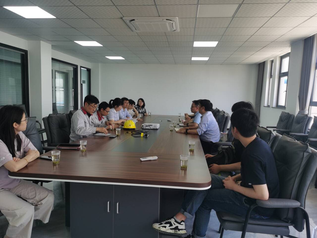 在廬江化工園,師生團隊與園區黨委委員、副主任蔡俊生進行了座談。雙方就人才培養、科研合作、實習就業等方面進行了深入交流。學院領導介紹了學院的專業設置、師資力量和科研成果,并表達了與企業建立長期合作關系的愿望。蔡俊生對學院的來訪表示歡迎,并介紹了廬江化工園的發展情況和未來規劃。他強調,加強與高校的合作是推動園區高質量發展的重要途徑。