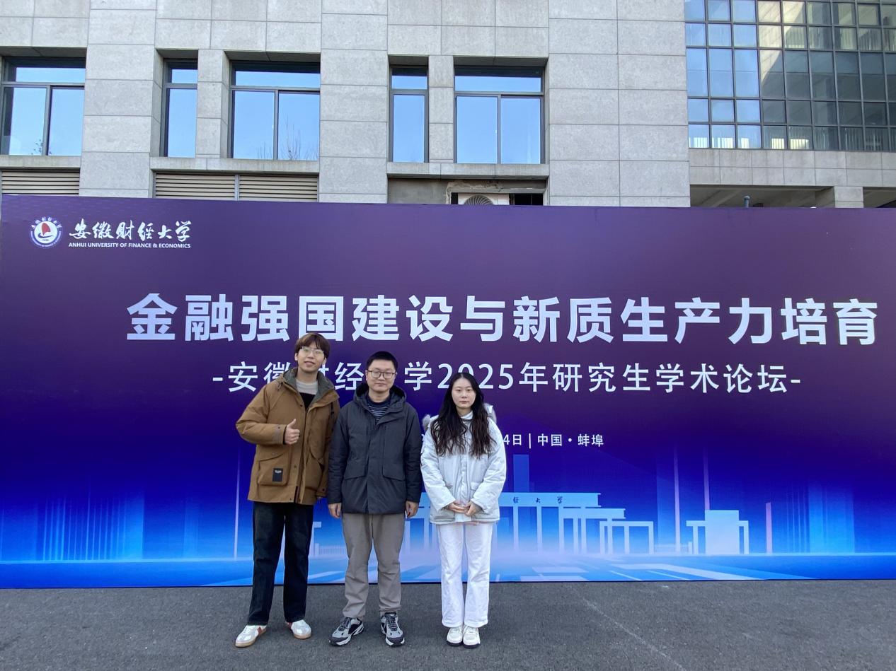本次論壇由安徽財經大學主辦,設置1個主會場、10個分論壇,共入選碩博論文120篇,涵蓋數智賦能與管理范式革新、氣候風險治理與綠色轉型路徑、企業創新生態與核心競爭力構建等多個熱點主題。經濟學院金融碩士點負責人范宇翔老師帶領研究生參加,合肥大學2024級金融專碩馮靖雯、肖文浩分別在相關分論壇發表學術匯報。馮靖雯在“企業創新生態與核心競爭力構建”分論壇中,以《實質創新還是策略創新:環境政策不確定性與企業“漂綠”》為題,深入剖析環境政策波動對企業創新行為的影響機制,提出了鑒別企業綠色創新真實性的研究視角。肖文浩在“全球貿易重構與產業鏈韌性建設”分論壇上,匯報了《數字金融對先進制造業與現代服務業融合發展的影響研究》。兩位同學得到了論壇點評專家的指導建議,并獲得優秀獎。