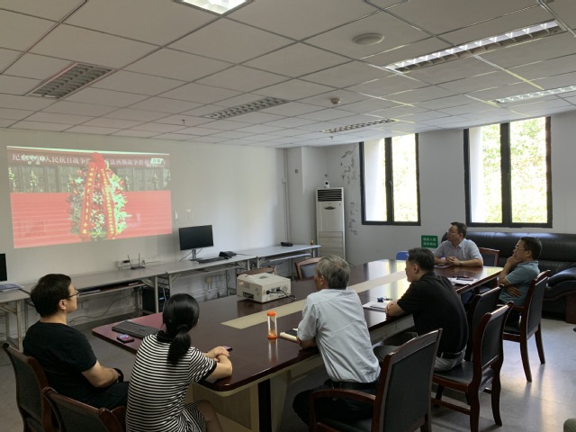 9月3日上午9時50分,在行政樓3樓會議室,機關黨支部二支部組織全體黨員同志集中觀看了抗戰(zhàn)勝利紀念日敬獻花籃儀式直播。