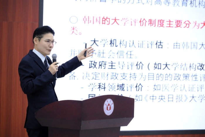 會(huì)上,具滋億教授以“韓國(guó)大學(xué)評(píng)價(jià)政策與地方大學(xué)發(fā)展——以西京大學(xué)、極東大學(xué)為例”為題,系統(tǒng)介紹了韓國(guó)高等教育體制現(xiàn)狀及政府評(píng)價(jià)體系,并分享了兩校在課程重構(gòu)、教學(xué)方法創(chuàng)新、教育質(zhì)量認(rèn)證等方面的實(shí)踐經(jīng)驗(yàn)。