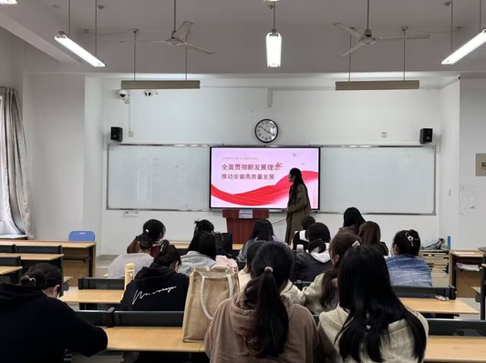 活動伊始,黨支部書記王多慈老師帶領全體黨員回顧了習近平總書記三次來訪安徽的重要講話精神。黨的十八大以來,習近平總書記三次赴安徽考察調研,深入鄉村、城市、高校、企業、科研文化單位等,為新時代安徽創新發展明確方向、擘畫藍圖,要求安徽“在構建以國內大循環為主體、國內國際雙循環相互促進的新發展格局中實現更大作為,在加快建設美好安徽上取得新的更大進展”。總書記在講話中強調了創新、協調、綠色、開放、共享的新發展理念,為安徽乃至全國的發展指明了方向。 隨后,同學們共同觀看相關視頻資料。視頻中,安徽省各地在新發展理念的指引下,積極探索轉型升級之路,一批批高新技術產業蓬勃發展,綠色生態屏障日益堅固,對外開放水平不斷提升,人民群眾獲得感、幸福感顯著增強。同學們被一幕幕鮮活的畫面所震撼,紛紛表示要在新時代的征程中,更加堅定地踐行新發展理念。 視頻觀看結束后,支部組織了一場熱烈的討論會。黨員們結合各自的專業背景和實際經歷,暢談了對新發展理念的理解和對安徽高質量發展的思考。有的黨員提到,作為新時代的大學生黨員,要努力學習專業知識,為科技創新貢獻力量;有的黨員則關注到綠色發展,認為應該積極參與環保活動,倡導綠色生活方式;還有的黨員從對外開放的角度出發,談到了提升國際視野、增強跨文化交流能力的重要性。