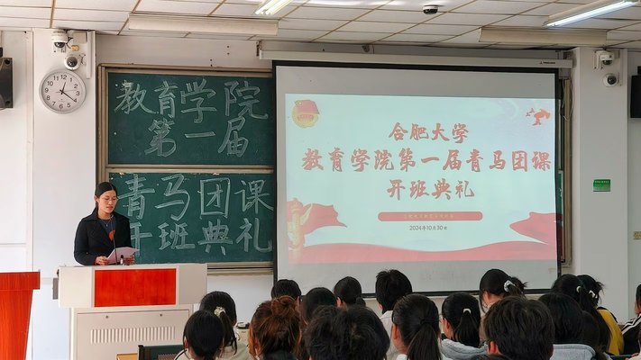 為加強青年學生的思想政治教育,培養一批有理想、有道德、有文化、有紀律的社會主義建設者和接班人,10月30日中午12點15分,合肥大學教育學院第一屆青馬團課開班典禮和第一次授課在一期3棟101教室拉開帷幕。出席典禮的有學院團委副書記張弦樂,團委學生兼職副書記朱思宇、周琴,主席團成員周友夢蝶、楊子涵、蘇雯和各部門委員以及各班班長、宣傳委員、思政委員和組織委員。組織部部長徐錦瑤主持此次開班典禮。 典禮伊始,主持人介紹青馬團課的相關事項和重要意義,鼓勵學員們珍惜這次學習機會,努力提升自己的思想政治素質和綜合能力。隨后,全體青馬團課學員齊唱共青團團歌。緊接著,主持人介紹了青馬團課的課程規則,對大家的青馬團課日常學習作出了一定要求。其中,團委副書記張弦樂提出,青馬團課是培養青年馬克思主義者的重要陣地,希望學員們通過團課的學習,堅定理想信念,增強責任感和使命感,將共青團精神發揚光大。