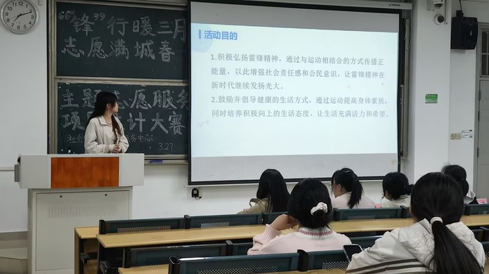 3月27日晚上19時,教育學院于3號教學樓101室舉辦了主題為“‘鋒’行暖三月,志愿滿城春”的志愿服務項目設計大賽。 賽前,各隊在簽到處通過抽簽確定上臺演講的順序,每支隊伍都表現出飽滿的熱情與期待,主持人詳細介紹了本次比賽的背景、規則與評分標準及此次活動的深遠意義。伴隨著主持人的開場白,這場充滿活力與創新的比賽正式拉開了序幕。