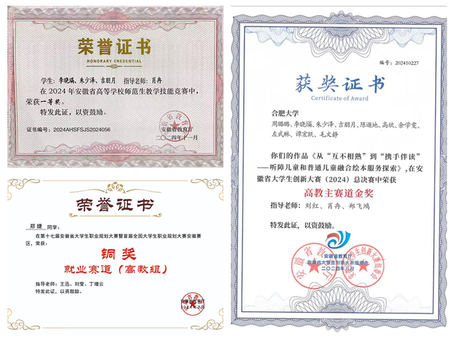 此前,在2024年安徽省高等學校師范生教學技能競賽中,我院教師指導的6組選手斬獲1個一等獎、1個二等獎、2個三等獎和2個優勝獎;1組選手在安徽省大學生創新大賽(2024)總決賽中榮獲高教主賽道金獎;2組選手在第十一屆“挑戰杯?華安證券”安徽省大學生創業計劃競賽、第十七屆安徽省大學生職業規劃大賽中分別榮獲銅獎。