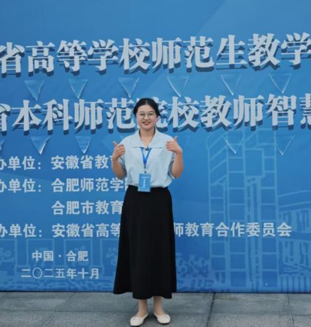 金秋十月,捷報頻傳。近日,教育學院美育中心在兩項重要的省級學科競賽中接連取得優異成績,充分展示了我院在美育教學與實踐領域的扎實成果和師范生培養的卓越質量。 在2025年10月下旬舉辦的安徽省高等學校師范生教學技能大賽中,由我院美育中心張延輝老師精心指導的23級小學教育專業方晨怡同學,憑借出色的表現,在競爭尤為激烈的綜合組中學美術科目比賽中,榮獲二等獎,并被安徽省教育廳擬推薦參加第七屆長三角師范生教學基本功大賽。 據了解,此項賽事綜合組匯聚了來自全省各高校的頂尖師范生,獎項含金量高。方晨怡同學此次獲獎,實現了美育中心在該項賽事美術類學科獎項“零的突破”,具有里程碑式的意義。這一成績不僅是對參賽同學個人專業素養與教學技能的肯定,更是符合美育中心堅持“以賽促教、以賽促學”理念,深耕教學改革結出的碩果。張延輝老師在賽后表示,方晨怡同學在備賽過程中展現了極大的熱情和毅力,此次獲獎是師生共同努力的結晶,也為未來美術方向師范生的培養積累了寶貴經驗。
