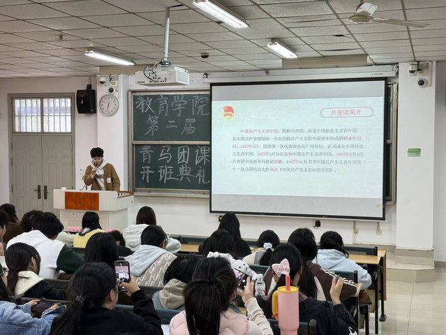 典禮由組織部部長魯琪靜主持。伊始,全體成員起立奏唱共青團團歌,在激昂旋律中感悟團員使命。隨后,主持人介紹團課召開背景、學習規劃及紀律要求。張弦樂老師結合黨的號召發言,強調青馬團課重要意義,囑托學員牢記團員身份,將理論成果轉化為成長動力。新生代表張韻涵上臺展現青年朝氣,張慧對典禮作系統總結并展望未來。