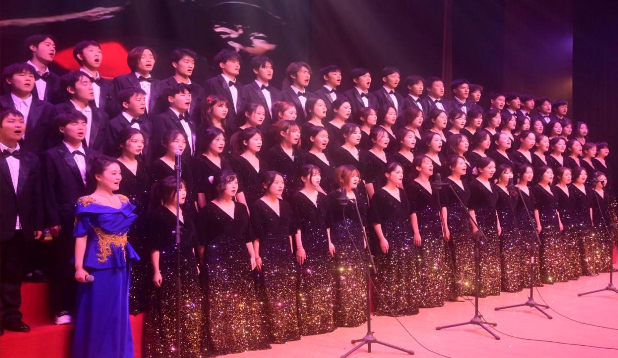 經過激烈角逐,各大獎項塵埃落定。校合唱團憑借《四渡赤水出奇兵》《愛永在》的壓軸演繹斬獲特等獎,大氣磅礴的選曲、飽滿醇厚的和聲與沉穩有力的節奏,將整場比賽的愛國氛圍推向高潮。文化與旅游學院合唱團、教育學院合唱團分別以《愛永在》《解放區的天》和《毛委員和我們在一起》《沒有共產黨就沒有新中國》榮獲一等獎,前者盡顯家國情懷,后者讓觀眾沉浸式感受歷史厚重與和平珍貴。 此外,外國語學院、生命健康與環境工程學院、電子信息與自動化學院3支合唱團榮獲二等獎,設計學院、人工智能與大數據學院及數學與統計學院等6支合唱團榮獲三等獎。各獲獎隊伍風格各異,用多元演繹展現了新時代青年的紅色傳承與藝術素養。