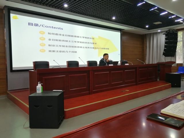 針對我院教育碩士點招生培養處于起步階段的現實,周潤智教授從分析全國全日制教育碩士學制現狀出發,詳細解讀了全日制教育碩士三年學制的優勢、要求,以及全日制教育碩士培養方案制定中的關鍵問題,特別是培養目標、人才培養定位、課程設置、選修課與培養目標及人才培養定位的匹配度、學位論文,以及非全日與全日制教育碩士在培養中的差異等方面,提出了前瞻性和建設性實施方案。