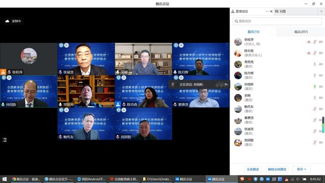 為貫徹落實全國及全省研究生培養(yǎng)和管理相關會議精神,建設高質量的研究生導師和教育管理隊伍,10月30日,教育學院組織教育專業(yè)學位碩士生導師參加全國教育碩士研究生培養(yǎng)院校指導教師研修會(線上會議)。此次會議由中國學位與研究生教育學會主辦、濟南大學承辦,來自北京師范大學、華東師范大學、湖南師范大學、安徽師范大學、上海師范大學等全國80多所高校的近200位代表共聚云端,就教育碩士研究生培養(yǎng)和管理等議題進行了熱烈而深入的研討。劉紅、謝兆樹、劉菂斐、衛(wèi)萍、陳芬萍、夏蓓潔、陳艷艷等12位研究生導師或管理人員通過視頻連線參加了此次會議。