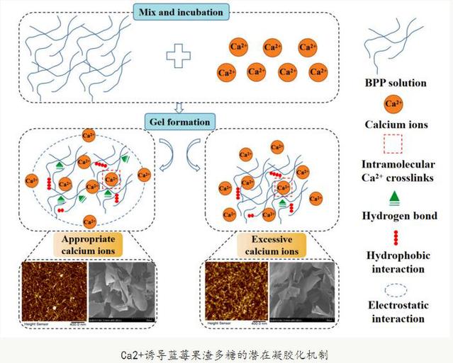 團隊開展研究發現,適當濃度的Ca2+促進藍莓果渣多糖形成“蛋盒”模型的凝膠網絡結構,相關成果以“Gelling properties and formation mechanism of blueberry pomace polysaccharide gels induced by calciumions”為題,發表在《Food Chemistry》上(DOI:10.1016/j.foodchem.2025.142918)。王儲炎為通訊作者,合肥大學生物食品與環境學院為第一完成單位。