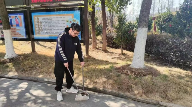 在教學樓的走廊里,學生們手持拖把,專注地清掃著地面,讓走廊地面變得一塵不染。垃圾桶周圍,同學們將散落的垃圾一一拾起分類投放。此外,針對校園內自行車、電動車停放雜亂的問題,同學們承擔起車輛整理工作,將一輛輛車擺放整齊,讓校園道路更加通暢有序。