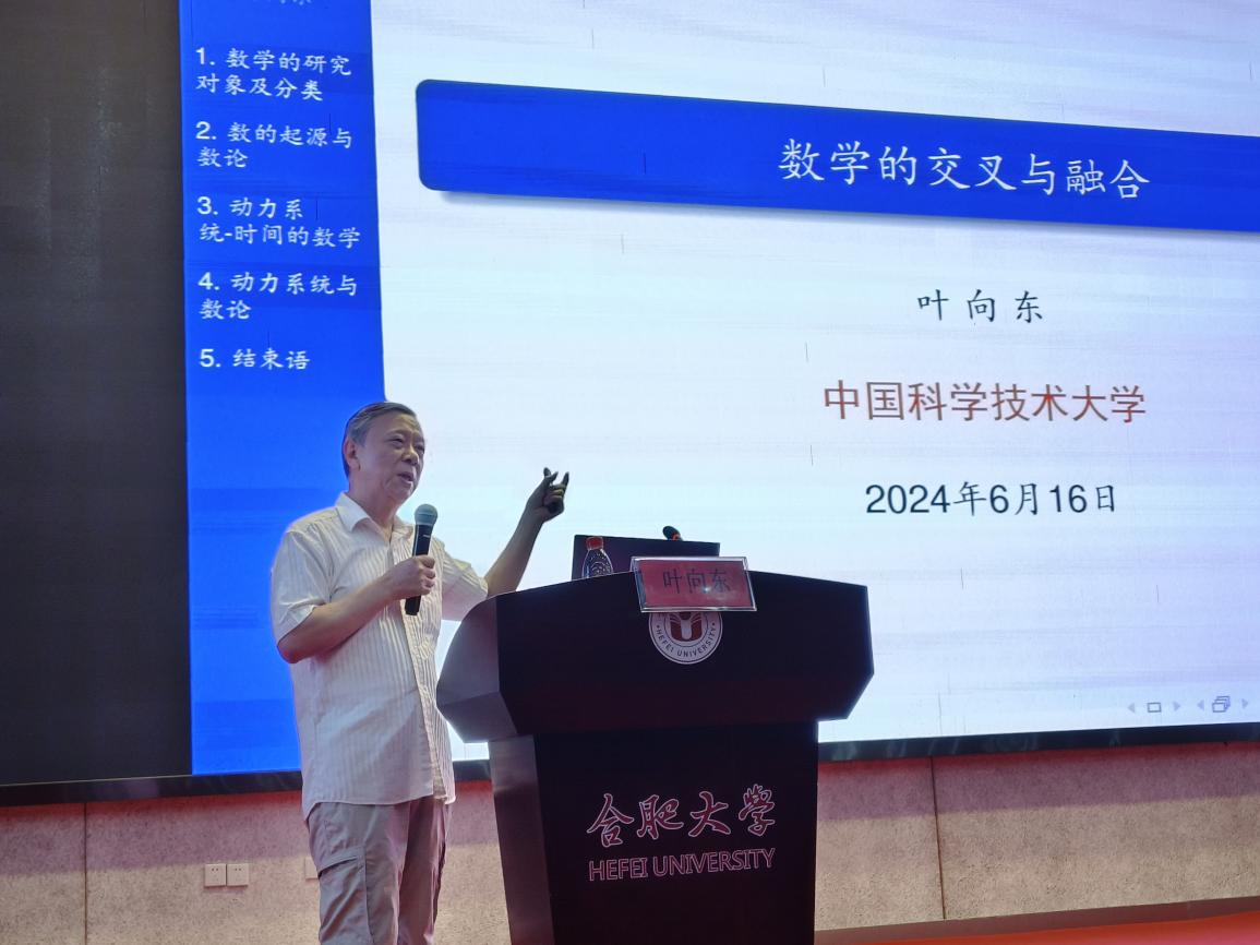 2024年6月16日上午,由科研處、人工智能與大數(shù)據(jù)學(xué)院主辦的南艷湖大講堂學(xué)術(shù)報(bào)告在圖書(shū)館報(bào)告廳A廳舉行,邀請(qǐng)了中國(guó)科學(xué)技術(shù)大學(xué)、中國(guó)科學(xué)院院士葉向東教授,到合肥大學(xué)做學(xué)術(shù)科普?qǐng)?bào)告。報(bào)告會(huì)由合肥大學(xué)副校長(zhǎng)陳秀主持,科研處處長(zhǎng)王儲(chǔ)炎、人工智能與大數(shù)據(jù)學(xué)院領(lǐng)導(dǎo)班子、師生代表400余人參加報(bào)告會(huì)。