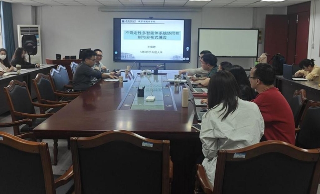 2025年5月8日下午,人工智能與大數(shù)據(jù)學(xué)院邀請(qǐng)安徽師范大學(xué)博士生導(dǎo)師王佩君教授在37號(hào)樓305會(huì)議室為我院師生作學(xué)術(shù)報(bào)告,報(bào)告主題為“不確定性多智能體系統(tǒng)協(xié)同控制與分布式博弈”,科研處副處長(zhǎng)王磊教授、數(shù)學(xué)與統(tǒng)計(jì)系閆曉輝教授、部分青年博士教師數(shù)學(xué)學(xué)科全體碩士研究生參加此次報(bào)告會(huì)本次報(bào)告由王磊教授主持。