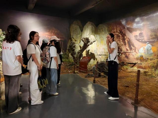 在講解員的帶領下實踐團隊成員們依次參觀了紀念碑、紀念館、烈士墓區等場所。成員們認真聆聽戰爭中七千健兒在東進抗日卻遭受陰謀的沉痛過往和突圍將士們在絕境中堅守信仰、浴火成長的英雄事跡。成員們駐足在展柜前閱讀泛黃的文獻、銹跡斑斑的武器和珍貴的歷史照片,深切感受著革命先烈們面對生死考驗時的無畏與忠誠。