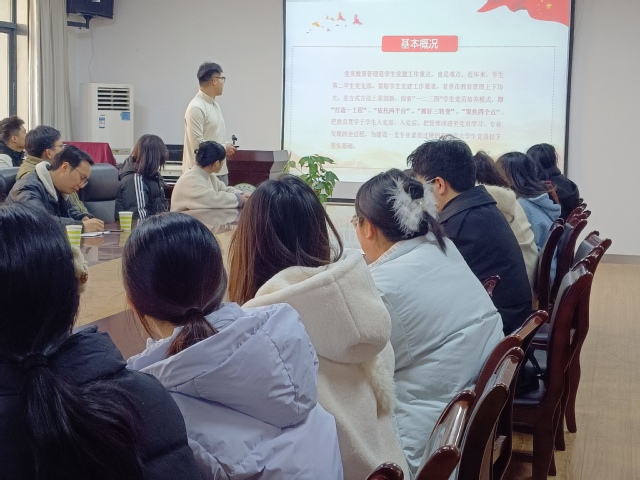 活動伊始,陳玲簡要介紹合肥大學生物食品與環境學院黨支部工作情況,楊林就合肥大學生物食品與環境學院環境工程系學生黨支部的特色工作進行匯報。他從突出黨性教育、作用發揮、使命擔當三個方面,詳細闡述工作經驗與成果,展現了合肥大學生物食品與環境學院學生黨支部的工作特色與成效。緊接著,合肥師范學院徐浩然老師介紹其所在黨支部工作內容,分享寶貴經驗。雙方在交流中相互學習,共同探討黨建工作新思路。隨后,合肥師范學院兩位國家獎學金、國家勵志獎學金獲得者分享了學習與成長經驗。經驗分享后,趙暮雨、楊林、陳玲與徐浩然、周其松圍繞入黨積極分子教育考察、預備黨員及黨員發展、學生工作等展開了熱烈的交流。