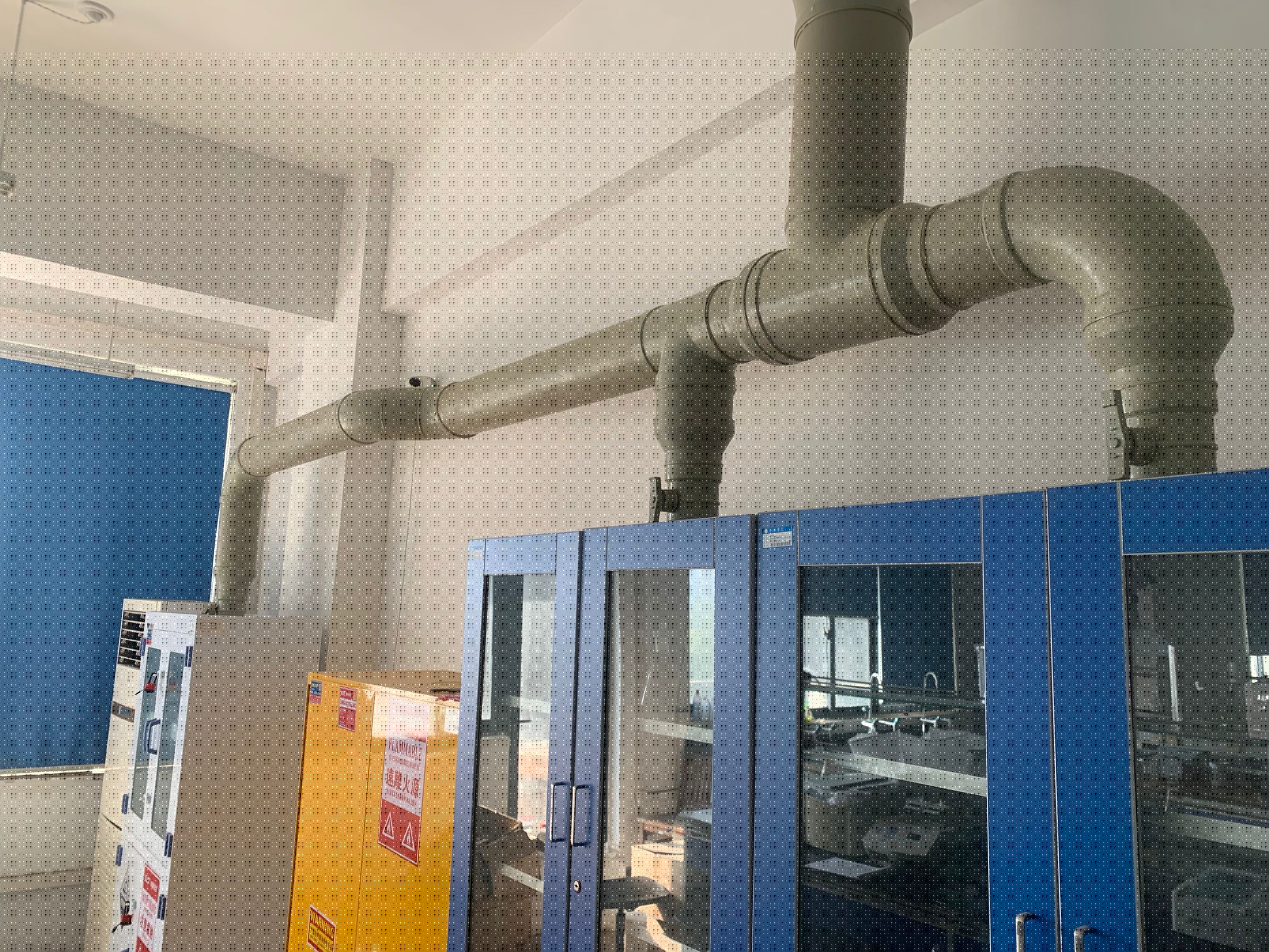 學院通風系統改造是為了應對實驗室日益增長的教學科研需求以及對實驗室空氣質量和安全標準的更高要求。改造前,原有的通風系統完全處于不工作狀態,不僅影響實驗結果的準確性,也對師生的身體健康構成了潛在重大威脅。在校領導大力支持,實驗室建設與管理處積極推進,在學院實驗實訓中心前期大量調研下,經過詳細的規劃和精心的施工后,新的通風系統采用了先進的技術和設備。實驗室廢氣排放末端更新了處理設施并更換了大功率風機,提高處理風量,大大地改善了實驗室的通排風效果以及空氣的高效凈化。改造后的通風系統有效地排除了實驗過程中產生的有害氣體和異味,大大提高了室內空氣質量。同時,穩定的氣流和適宜的溫度濕度,也為實驗設備的正常運行提供了有力保障,有助于提高實驗數據的可靠性和教學科研工作的效率。