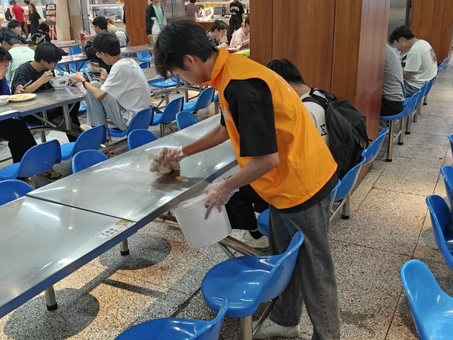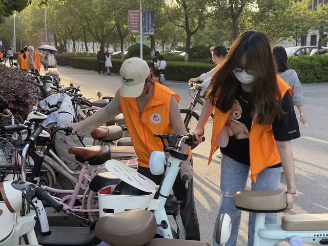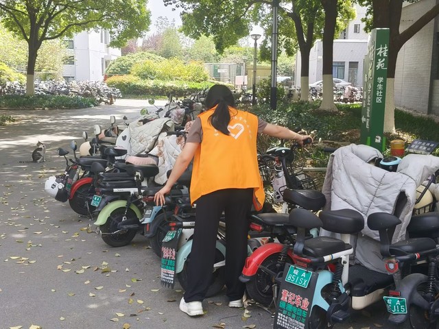 在用餐期間,志愿者們分成若干小組,分別負(fù)責(zé)食堂大廳、餐桌椅、餐具回收區(qū)等區(qū)域的清潔工作。他們手持抹布、清潔工具,認(rèn)真擦拭每一張餐桌椅,清理餐具回收區(qū)的雜物和油污,確保食堂環(huán)境干凈整潔,為就餐的同學(xué)們提供了良好的用餐環(huán)境。在改善食堂衛(wèi)生的同時(shí),另一組志愿者則聚焦于宿舍樓下停車秩序問題。隨著校園內(nèi)車輛數(shù)量的增加,宿舍樓下停車秩序混亂,不僅影響了同學(xué)們的正常通行,也給校園環(huán)境帶來了安全隱患。志愿者們將車輛停放在指定區(qū)域,他們將隨意停放的車輛扶正,確保車輛停放整齊。