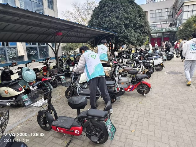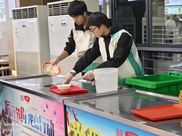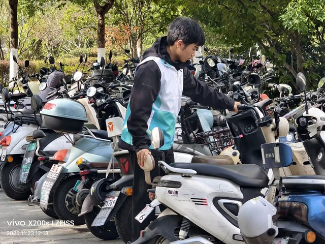 活動期間,食堂服務現場暖意滿滿。二期、三期食堂內,志愿者們準時到崗,主動引導同學們有序排隊就餐,耐心提醒按需取餐、踐行“光盤行動”,同時協助整理餐桌雜物,及時勸阻不文明就餐行為。在志愿者的示范帶動下,同學們自覺遵守就餐秩序,剩飯剩菜明顯減少,文明就餐、節約糧食的氛圍愈發濃厚,食堂環境始終保持整潔有序。校園交通秩序整治同步推進。男女宿舍樓下,志愿者們化身校園秩序守護者,認真引導同學們將非機動車規范停放在指定區域,對零散停放、占用通道的車輛逐一整理歸位,同時向過往同學講解規范停車的重要性,提醒大家自覺維護校園交通環境。經過兩天的細致服務,宿舍周邊車輛停放雜亂的問題得到有效改善,校園通行路徑更加順暢,既保障了師生出行安全,也讓校園環境更顯規整。
