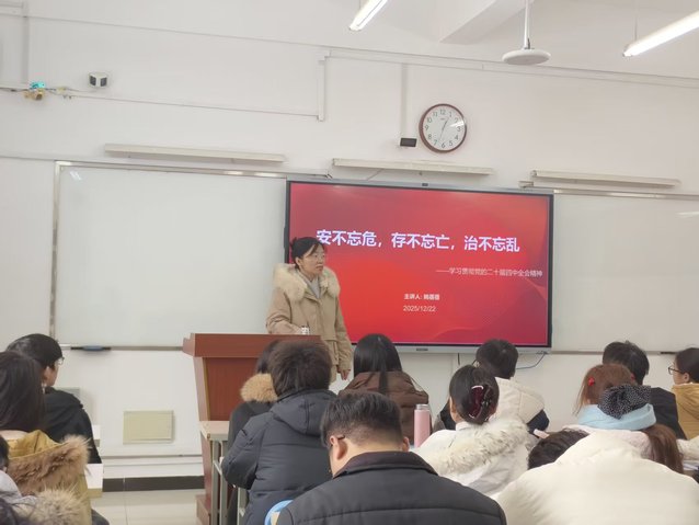 為引導青年黨員深刻領悟黨的二十屆四中全會精神內涵,找準個人成長與國家發展的結合點,12月22日中午,生命健康與環境工程學院黨委副書記姚蓓蓓做題為“安不忘危,存不忘亡,治不忘亂——學習貫徹黨的二十屆四中全會精神”專題黨課。院學生第二黨支部和研究生第二黨支部全體黨員參加。