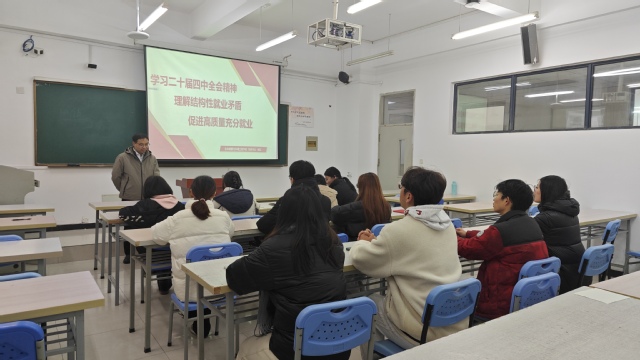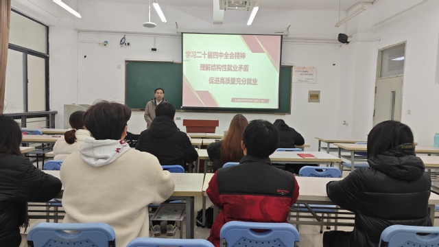 楊紅從三方面系統闡釋:一是解讀二十屆四中全會對就業工作的新部署;二是剖析結構性就業矛盾的表現與成因;三是探討大學生提升素質、樹立正確擇業觀的路徑。
