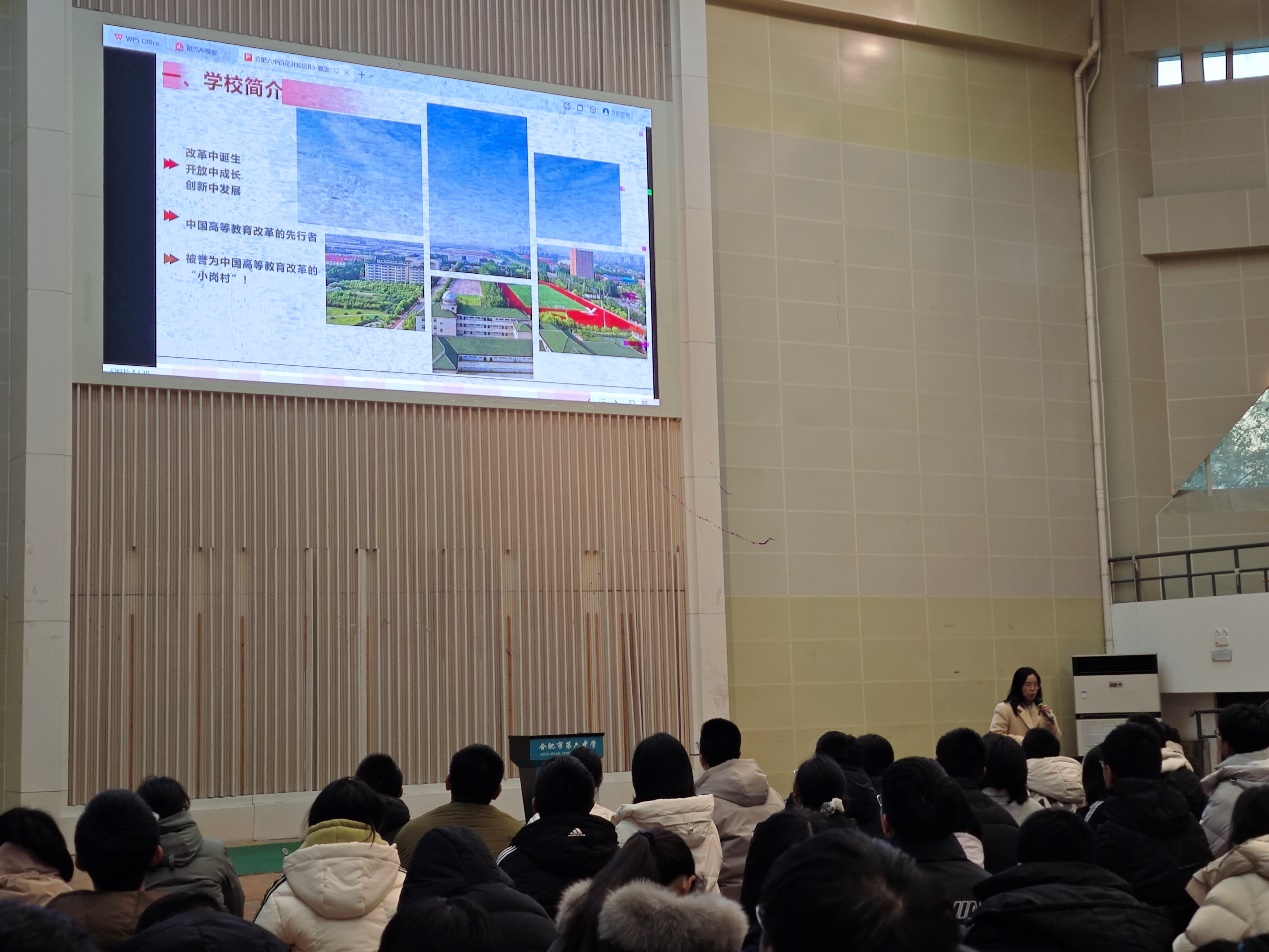 為響應學校招生宣傳工作,拓寬本科生生源,2026年1月21日,合肥大學生命健康與環境工程學院教學副院長夏瀟瀟和教師范迪前往合肥市第六中學百花井校區開展招生宣傳工作。六中年級部負責人鄧中亞和團委副書記王楷文熱情接待,校區400余名學生參與活動。