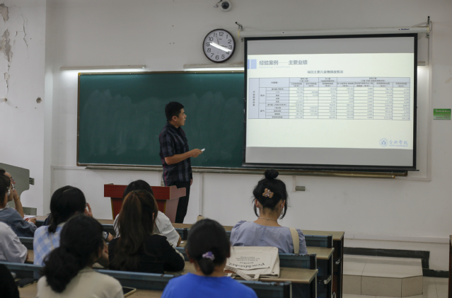 講座伊始,由學院教師簡明介紹杰出校友的個人事跡和所獲榮譽。在陳鐵龍校友開始簡單的自我介紹后,展示了其曾在大學里學習、生活和其企業的主要業績。他說道,“好的起點是迎接變化的關鍵”,告誡新生“多珍惜,少遺憾”,指出考取環評工程師,環保工程師,一級造師的對完成學業后就業的具有重要作用。王煒進行詳細地專業介紹的同時,著重強調了在大學期間需要著重培養自身的動手能力、交流能力和團隊意識,建議同學們“深入每個知識,讓未來的可能無限,前路廣闊”,鼓勵同學們擼起袖子加油干。會議進行到最后,他們表達了對新生的祝愿。陳鐵龍、王煒的演講引發了同學們的積極響應,學生踴躍發言提問,他們立刻做出了專業的回答。最后,我院教師表達了期望與祝福,此次講座順利的落下帷幕。