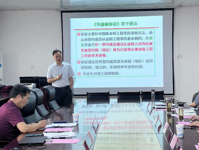 阮班鋒院長(zhǎng)致歡迎辭,儲(chǔ)忠處長(zhǎng)把我校工程教育認(rèn)證開展情況作了發(fā)言,并表示工程教育認(rèn)證是為專業(yè)更好地發(fā)展。