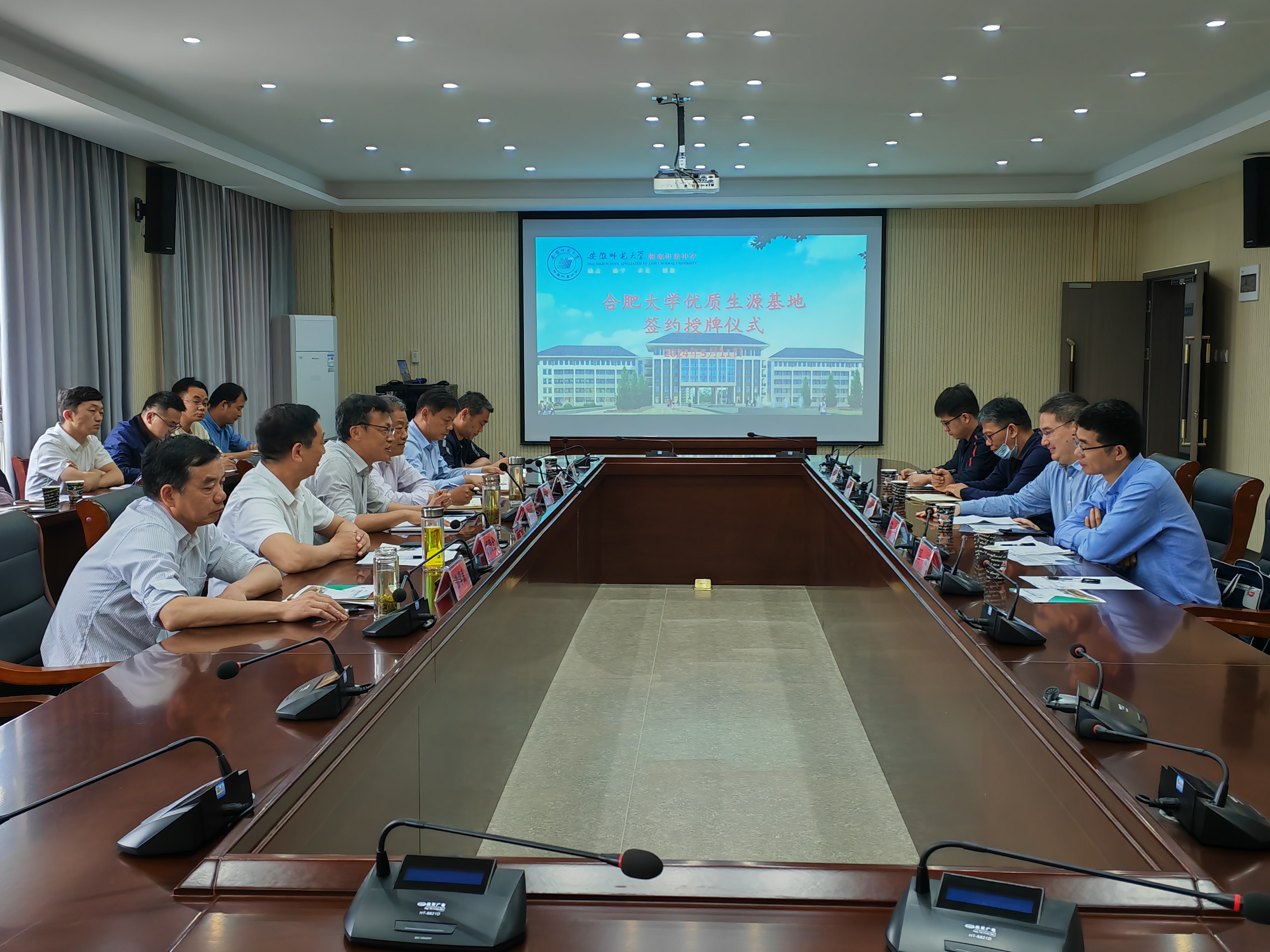 在安師大附屬葉集中學,阮班鋒就我院在人才培養、教學科研、科技創新、專業設置等方面的特點與優勢進行了詳細介紹,希望通過共建優質生源基地的方式,進一步加強兩校之間的交流與合作。安師大附屬葉集中學校長章志學表示,合肥大學授予安師大附屬葉集中學“優質生源基地”稱號,不僅是對學校辦學成果和人才培養的充分認可,更為兩校今后深入開展交流與合作奠定了堅實的基礎。座談會后,雙方簽署《合肥大學優質生源基地共建協議書》,并舉行了合肥大學和安師大附屬葉集中學“優質生源基地”授牌儀式。