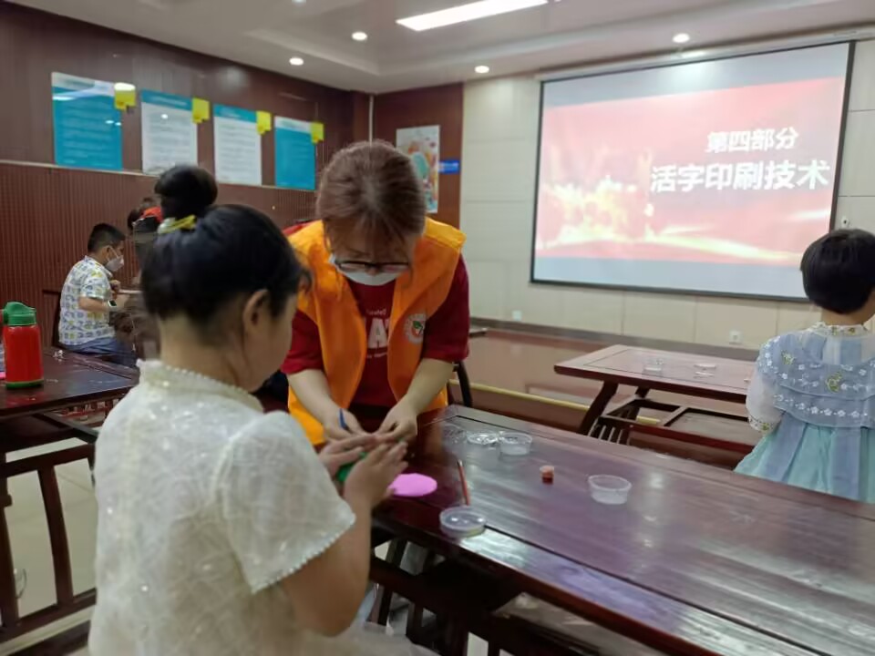 活動(dòng)過程中,學(xué)生黨員志愿者通過精心準(zhǔn)備的PPT和有關(guān)于五四運(yùn)動(dòng)的視頻,為小朋友們講述了五四運(yùn)動(dòng)的背景、具體過程以及深遠(yuǎn)的意義。此外,支部還將中國傳統(tǒng)文化——活字印刷術(shù)與五四主題巧妙地結(jié)合,引導(dǎo)孩子們樹立正確的三觀,了解五四運(yùn)動(dòng)所代表的愛國、進(jìn)步、民主、科學(xué)的意義。孩子們認(rèn)真聽講,與志愿者們一同沉浸在先輩們的勇敢氛圍之中。