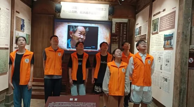 “朋友!中國是生育我們的母親。你們覺得這位母親可愛嗎?我想你們是和我一樣的見解,都覺得這位母親是蠻可愛蠻可愛的……”從大山深處傳來了一陣瑯瑯的讀書聲,循著聲音望去,是調研團隊員們在集體朗誦方志敏同志的《可愛的中國》。“鄉”遇青春,“演”動綠夏調研團穿越翠綠的樹林,攀登險峻的山嶺,來到革命舊址,先后參觀了嚴家古村遺址、石臺紅色文化展示館。在這里,隊員們見到了方志敏同志在這里的故事,為方志敏同志對革命矢志不渝,對黨、對祖國、對人民的愛矢志不渝的精神所感動。在紅色紀念館,隊員們自發朗誦了方志敏烈士的《可愛的中國》,在朗讀中體會百年前的青年對祖國母親的熱愛;在筆墨間感受百年前的青年對祖國的美好未來的憧憬;在緬懷中堅定自己的理想信念,作為新時代中國青年,要為建設“可愛的中國”貢獻青春力量。