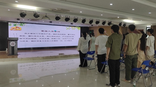 活動伊始,支部書記趙暮雨帶領支部全體黨員重溫入黨誓詞,重溫入黨時刻的堅定信念與決心,始終銘記入黨的誓言,使我們熱血沸騰,激勵著我們不斷進取,為共產主義奮斗終身。而后,趙暮雨對畢業生黨員開展貫徹“學紀、知紀、明紀、守紀”總要求的黨性教育,也用真摯的語言表達了對畢業黨員即將踏入校園的不舍與期盼,盼望他們能在未來的道路上繼續發光發熱,腳踏實地迎接未來新的篇章。