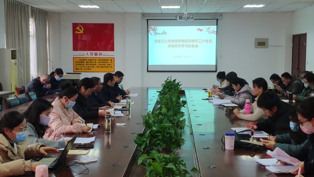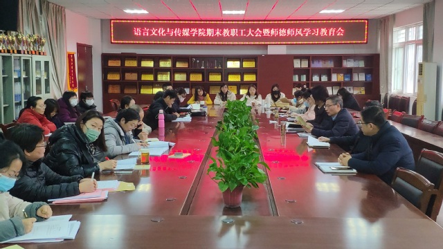 1月14日下午,語言文化與傳媒學院在五棟二樓會議室舉行了全體教師大會暨師德師風集中學習教育會,學院領(lǐng)導班子成員及全體教職工參加會議。
