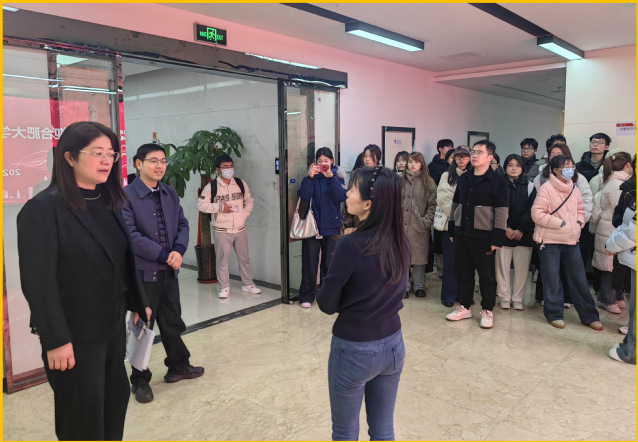 在安策智庫行政主管王俊霞引導(dǎo)下,師生先后參觀了公司開放式辦公區(qū)、社科研究中心、檔案管理室和黨建文化廳,了解數(shù)據(jù)監(jiān)測、政策分析等實(shí)務(wù)場景,現(xiàn)場觀摩智庫分析系統(tǒng)與數(shù)字化檔案管理技術(shù)的運(yùn)行模式。