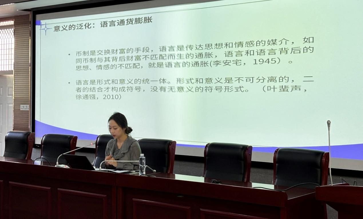 2025年4月29日下午,以“語言網絡化與媒介化思維的辯證之思”為主題的合肥大學2025年研究生學術沙龍系列講座在一期學術報告廳舉辦。本次講座由語言文化與傳媒學院23級碩士研究生趙天琪主講。語言文化與傳媒學院23級、24級碩士研究生,部分本科生參加。
