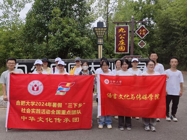 2024年7月9日上午十點(diǎn),語(yǔ)言文化與傳媒學(xué)院“文脈傳承,助農(nóng)興村”暑期“三下鄉(xiāng)”社會(huì)實(shí)踐團(tuán)隊(duì)隊(duì)員們徒步來(lái)到位于安徽省鄉(xiāng)村旅游“特色美食村”石板沖鄉(xiāng)九公沖村的九公莊園。