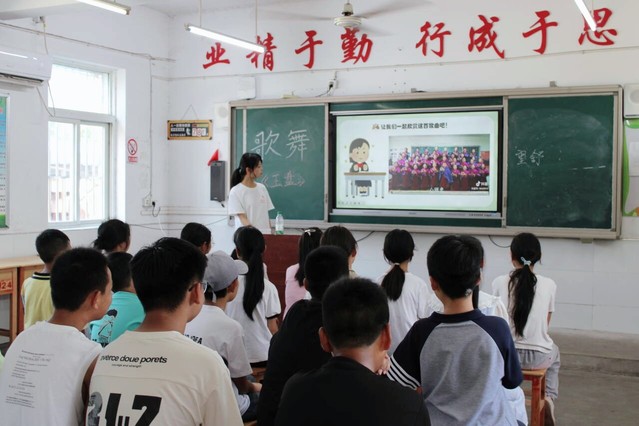 76日下午230,合肥大學(xué)語(yǔ)言文化與傳媒學(xué)院暑期三下鄉(xiāng)社會(huì)實(shí)踐團(tuán)隊(duì)教學(xué)組成員陳雨蒙和何經(jīng)晶,化身音符的使者與靈動(dòng)的舞者,帶領(lǐng)石板沖的孩子們?cè)俅瓮度搿队癖P(pán)》的曼妙世界,在這方浸潤(rùn)著鄉(xiāng)土氣息的校園里,奏響傳承與活力的樂(lè)章。