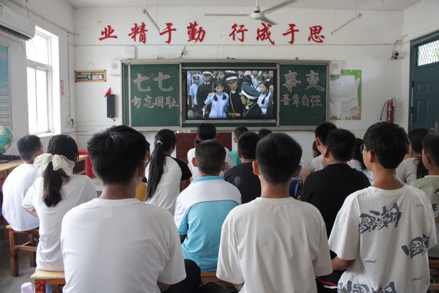 10:00,光影回溯歷史。教室內,《七·七事變》的槍炮聲穿透時空——盧溝橋上愛國將士的浴血抗爭與普通民眾的不屈脊梁,讓書本上的歷史在銀幕前重現其波瀾壯闊。孩子們屏息凝神,稚嫩的目光在民族危亡的沉重影像中閃爍著堅毅的星火。這堂生動的影史課傳遞的不僅是歷史事實,更是深植于血脈的民族精神與時代責任的無聲呼喚。
