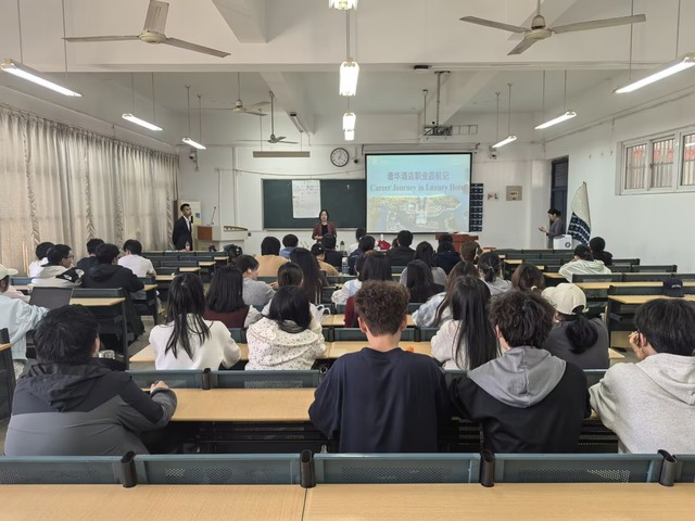 為進(jìn)一步深化校企合作,提升酒店管理專業(yè)學(xué)生的職業(yè)認(rèn)知與實(shí)踐能力,3月25日,旅游與會(huì)展學(xué)院特邀三亞亞龍灣瑞吉酒店人力資源團(tuán)隊(duì)走進(jìn)課堂,為酒店管理專業(yè)全體學(xué)生帶來了一場別開生面的職業(yè)分享與交流活動(dòng)。