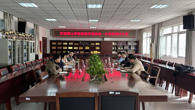 2025年10月31日上午,黃山學院教務處處長金聲瑯率旅游學院會展經濟與管理教研室主任趙蕾、副主任于君、骨干教師丁南,赴我院圍繞2026級人才培養方案修訂、課程改革、實習模式優化等開展調研。我校教務處副處長項響琴、學院副院長張體云、會展經濟與管理系主任高飛、旅游管理系主任張業臣出席座談。