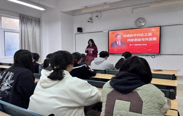 為深入學習貫徹習近平新時代中國特色社會主義思想,提高黨員和入黨積極分子的理論素養,文化與旅游學院學生第三黨支部于11月14日組織開展了讀書分享會。活動由支部黨員廖盈盈主持,聚焦“傳承和平共處之道,共繪命運與共藍圖”主題,重點學習了《習近平談治國理政》第五卷第十四、第十五章內容。三名黨員和積極分子結合專業背景與個人思考作重點發言。