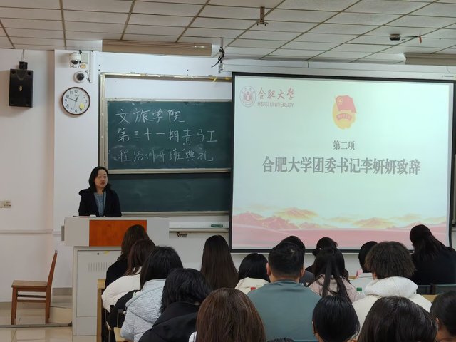 11月19日中午12:30,文化與旅游學院第三十一期青馬工程培訓班開班典禮在一區善思樓C座101教室舉行。合肥大學團委書記李妍妍、文化與旅游學院黨委副書記張愛萍、團委負責老師竇思佳、25級輔導員魏舒荍及全體學生會成員出席本次活動,全體青馬學員與入團發展對象共同參與。