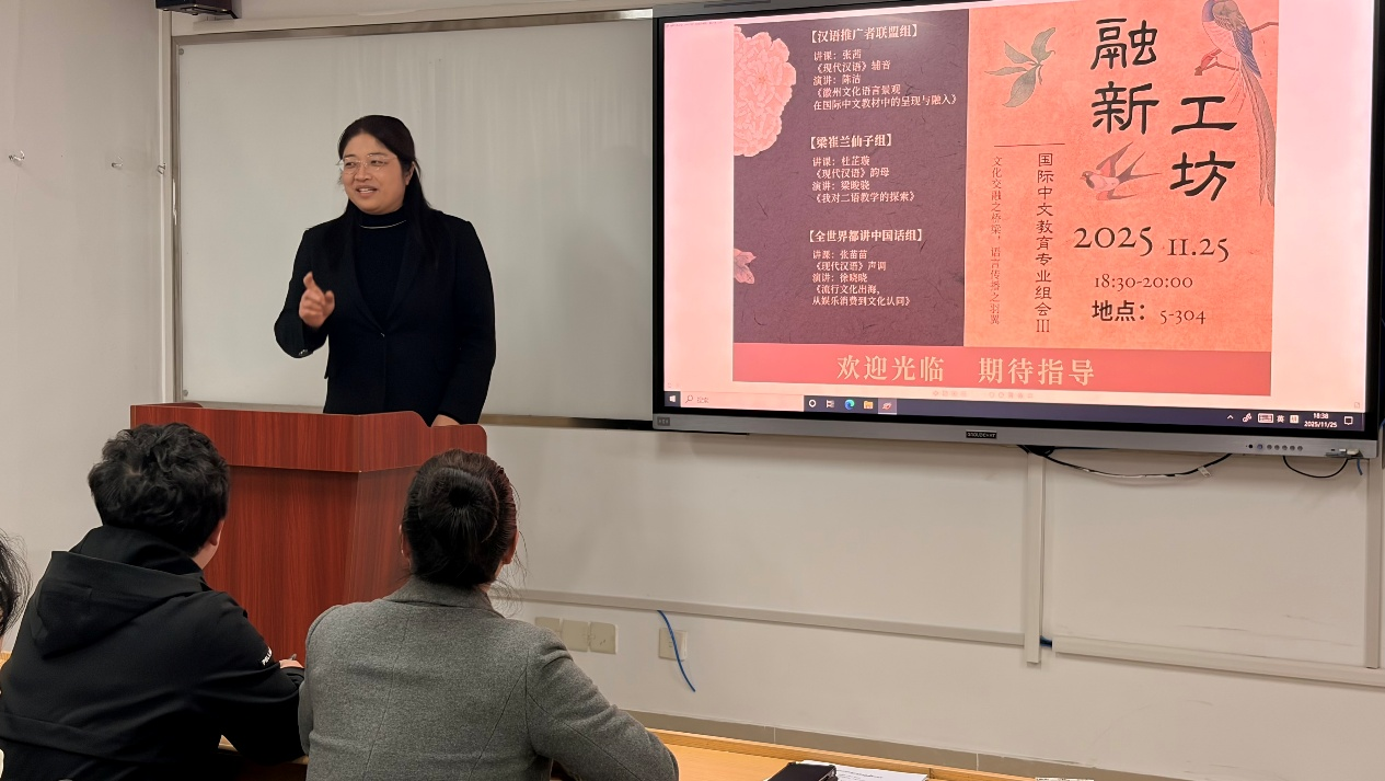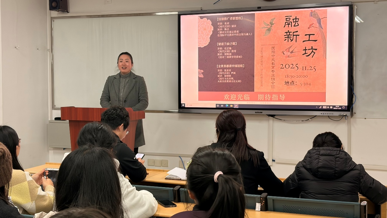 作為國際中文教育專業碩士點育人機制的重要載體,“融新工坊”系列組會持續聚焦教學能力與學術素養的雙重提升。本次組會在前兩次經驗基礎上,進一步優化內容設計,強化“教學相長、研以致用”的平臺功能,有效助力學生在課堂教學實踐與學術表達方面的成長。