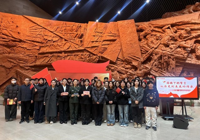 2025年12月15日上午,在文化與旅游學院團委老師竇思佳的帶領下,28名少數民族同學及9名院團委學生會骨干,赴渡江戰役紀念館參與由合肥市大中小學思政課一體化建設聯盟和合肥大學馬克思主義學院聯合舉辦的“國旗下的誓言:從歷史到未來的傳承”主題場館思政課教學活動。